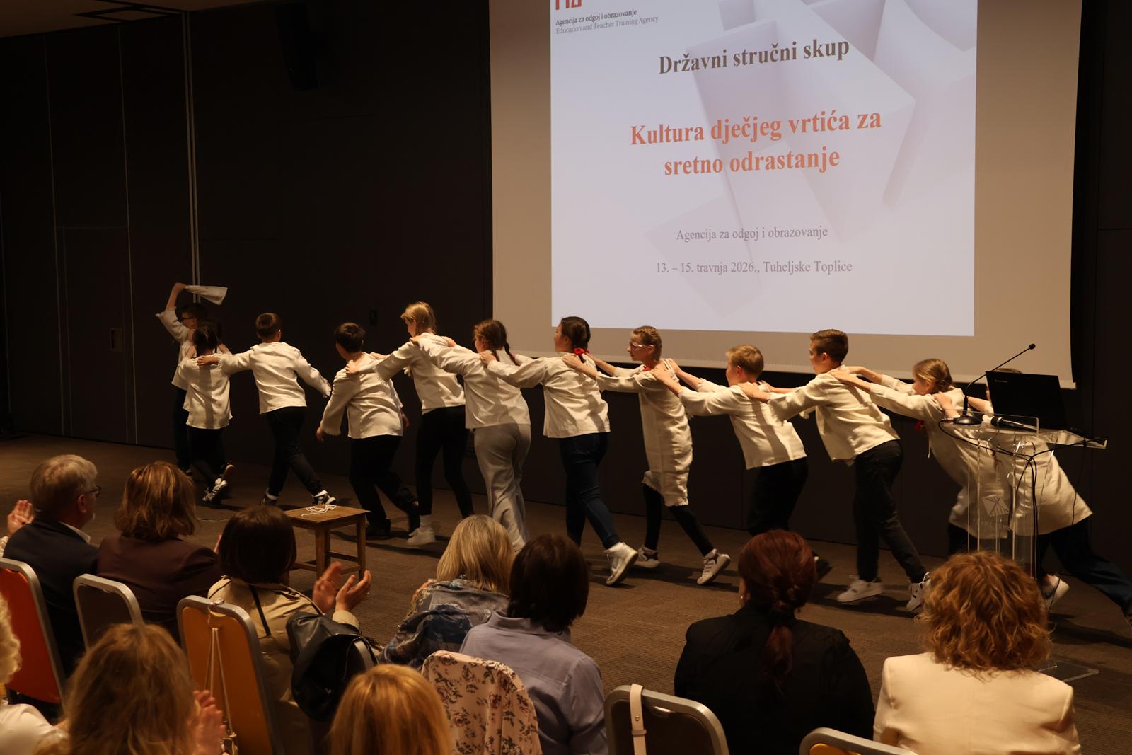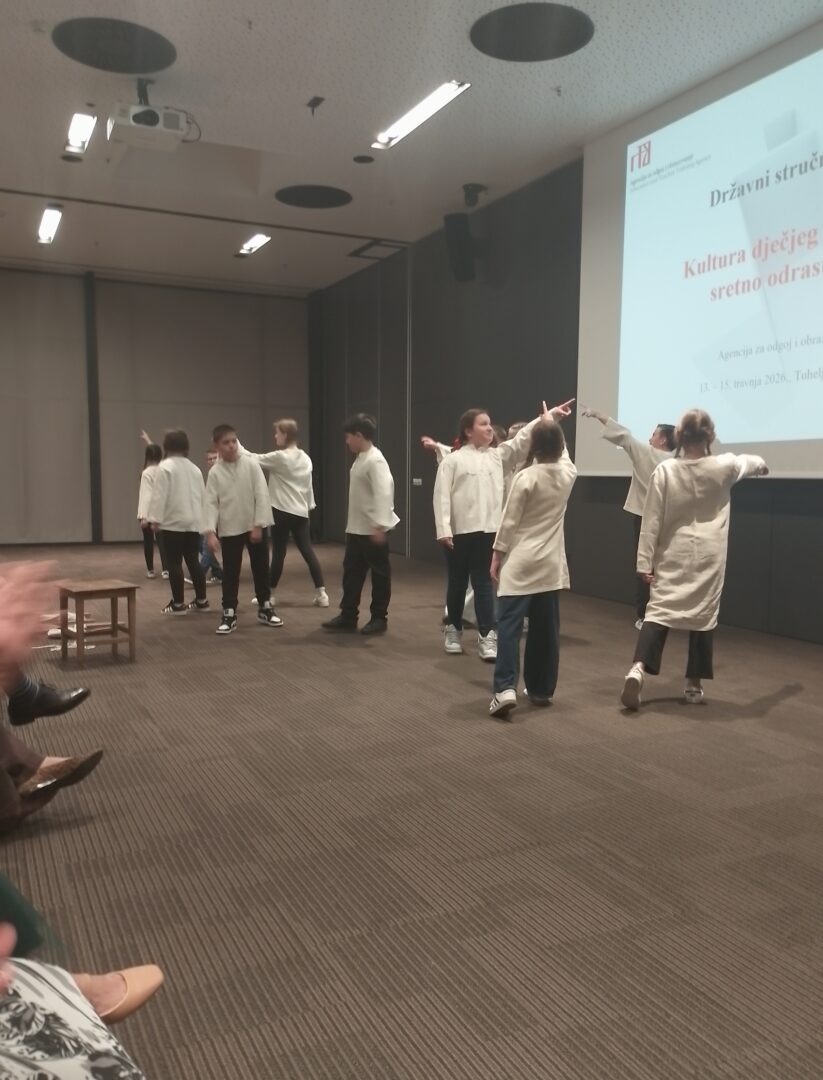 U organizaciji Agencije za odgoj i obrazovanje, od 13. do 15. travnja 2026. godine u Termama Tuhelj održao se državni stručni skup za odgojitelje u dječjim vrtićima. Svečano otvaranje skupa započelo je kratkim kulturno-umjetničkim programom u kojem je uz KUD Naša lipa Tuhelj sudjelovala i Kajkavska družina naše osnovne škole s dramsko-scenskom igrom A kaj je to. Nastupili su učenici 4. i 5.r. te svojim nastupom oduševili prisutne sudionike ovog stručnog skupa.